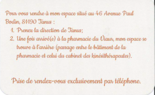 * Praticienne en Energétique Chinoise : Silvana COSTA da SILVA, 46 avenue Paul Bodin 07.77.75.40.20
