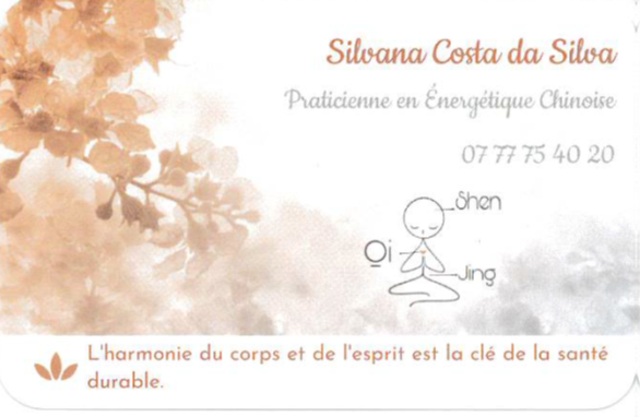 * Praticienne en Energétique Chinoise : Silvana COSTA da SILVA, 46 avenue Paul Bodin 07.77.75.40.20